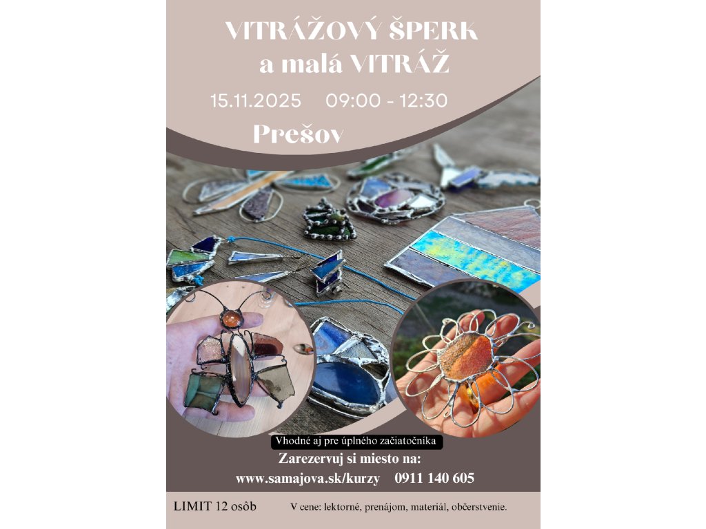 15.11.2025 Prešov, kurz presunutý, Vitrážový šperk a malá vitráž