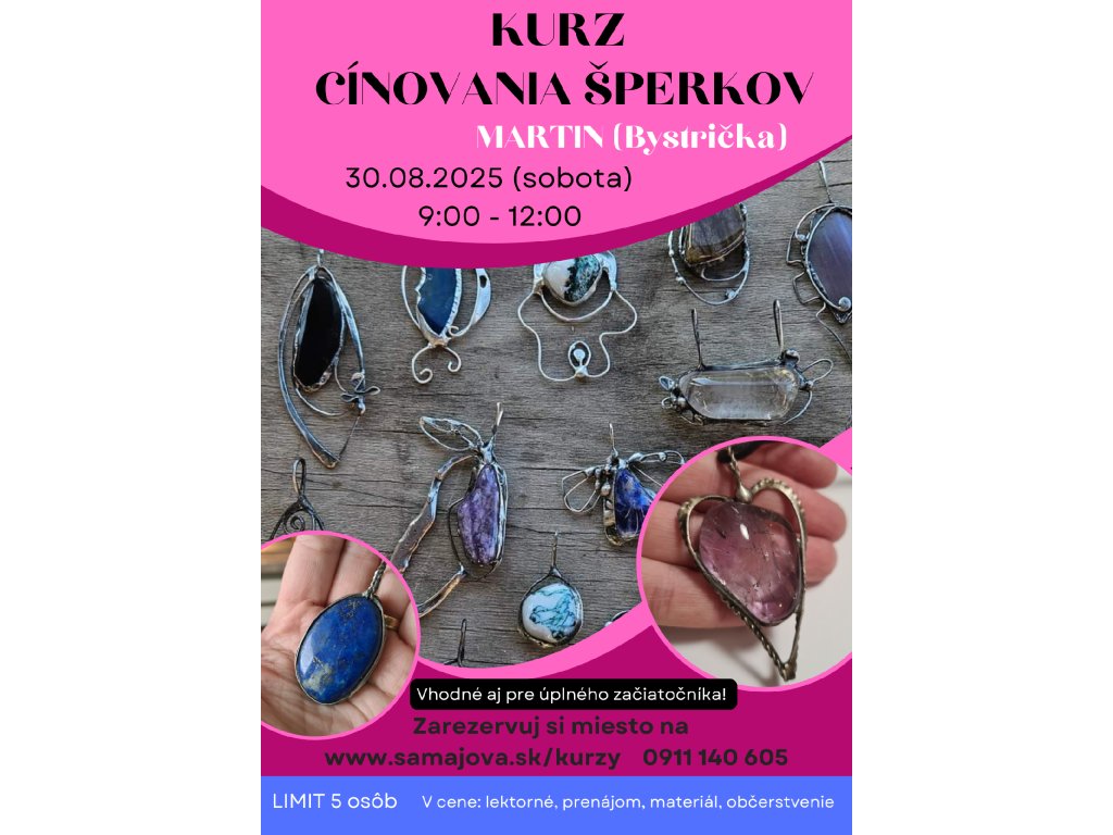 30.08.2025 Martin (Bystrička) Kurz cínovania šperkov pre začiatočníkov