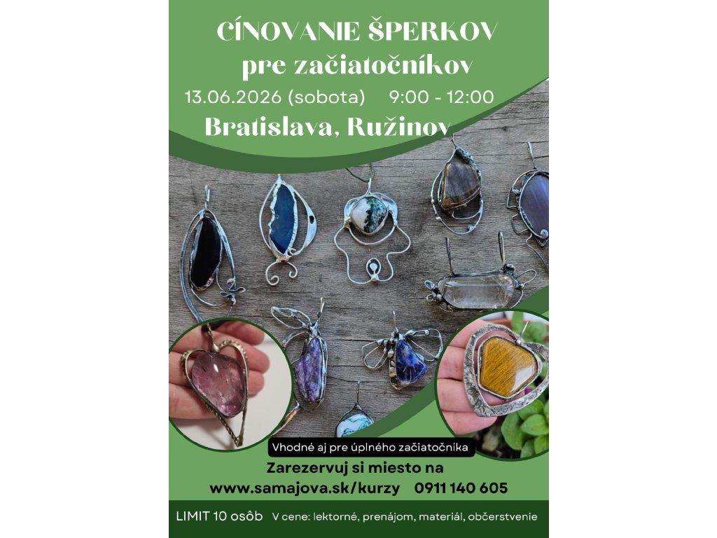 13.06.2026 Bratislava (sobota), Kurz cínovania šperkov pre začiatočníkov